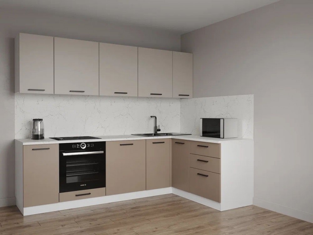 Кухонный гарнитур угловой Каппучино 2600*1600 (Стол. 26мм)