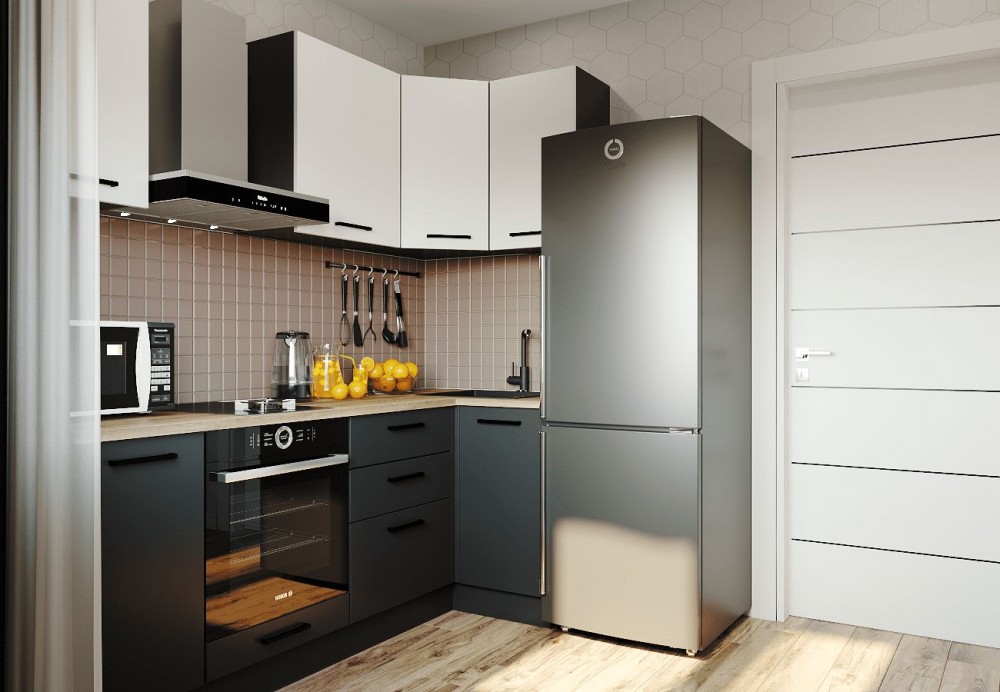 Размер (Ш*Г): 2200*1000 мм - Верхние модули: Цвет корпуса: Антрацит ЛДСП Фасады: Жемчуг ЛДСП - Нижние модули: Цвет корпуса: Антрацит ЛДСП Фасады: Антрацит ЛДСП Столешница: Дуб Вотан h26 мм